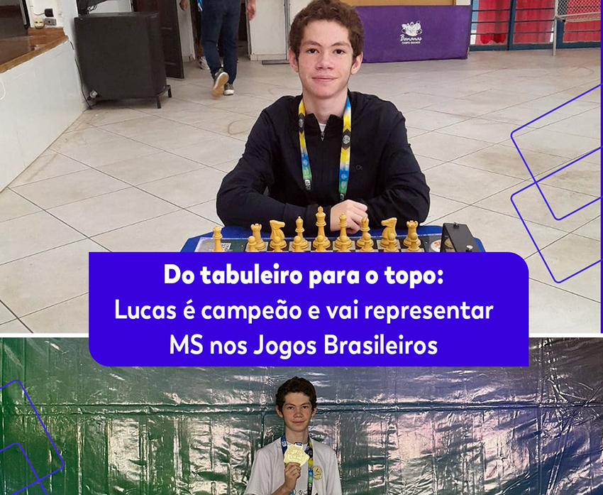 O jovem Lucas Pereira Ramalho, aluno da Escola Estadual Joaquim Mário Bonfim, sagrou-se campeão na categoria de 12 a 14 anos na modalidade de xadrez, durante os Jogos Escolares da Juventude de Mato Grosso do Sul. A competição foi realizada no último domingo (27) e reuniu estudantes de todo o estado em diversas modalidades esportivas.