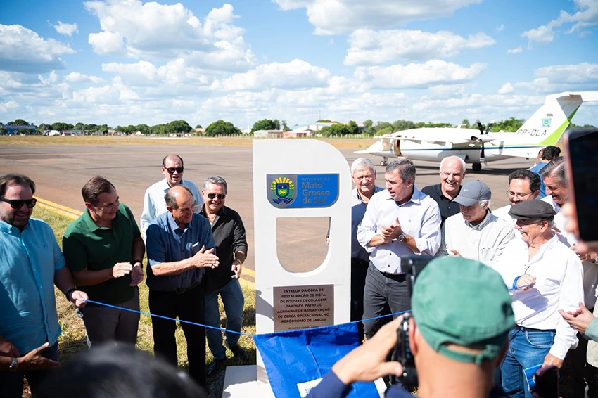 A programação teve início no Aeródromo de Jardim, com o descerramento do totem da obra de restauração da pista de pouso e decolagem, taxiway, pátio de aeronaves e implantação de cerca operacional. A ação representa um avanço importante para a infraestrutura aérea do município, fortalecendo o potencial logístico e turístico da região.