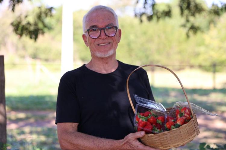 Ao se aposentar da engenharia agronômica, João Nogueira trocou os relatórios técnicos pelo aroma da estufa de morango. A inquietação típica de quem encerra um ciclo e não quer parar, encontrou resposta na terra e na Assistência Técnica e Gerencial (ATeG) do Senar/MS, para transformar o desejo de produzir em realidade. Com orientação especializada em fruticultura,  aos 67 anos, ele deu início a uma nova fase no Sítio Sagarana, zona rural de Campo Grande, onde cultiva não só morangos, mas também novos propósitos.