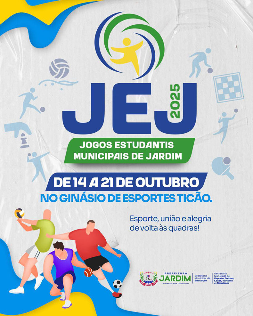De 14 a 21 de outubro, o Ginásio de Esportes Ticão será o palco de uma das maiores celebrações do esporte e da juventude jardinense. Os Jogos Estudantis de Jardim (JEJ) reúnem estudantes das escolas municipais, estaduais e particulares em uma semana de competições, integração e muita emoção. A energia das torcidas e a união entre as equipes prometem transformar o ginásio em um verdadeiro espetáculo de talento e espírito esportivo.