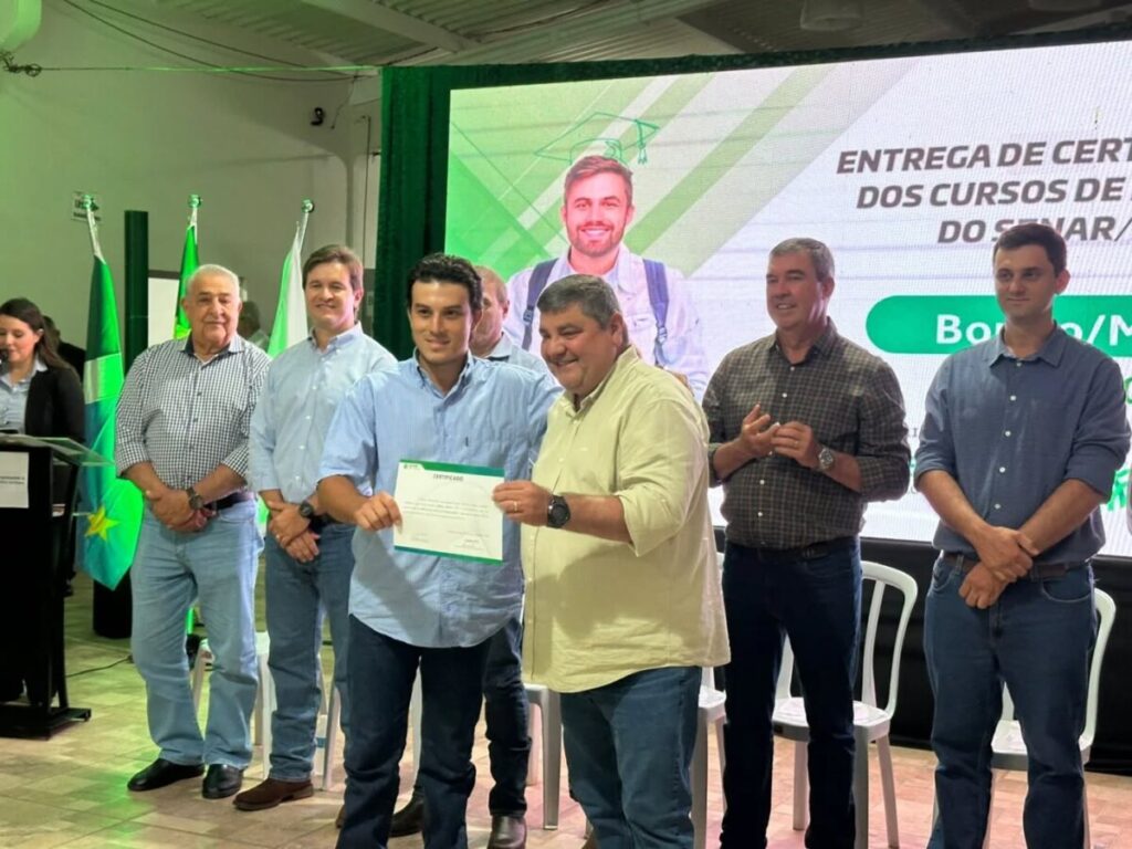 Durante a cerimônia, foram entregues certificados dos cursos de Formação Profissional Rural e Promoção Social do Senar-MS, valorizando a qualificação e o desenvolvimento das famílias do campo. A nova diretoria inicia o mandato com o desafio de manter o sindicato como referência na defesa do produtor rural e no fortalecimento do agro como pilar essencial do crescimento sustentável de Bonito.
